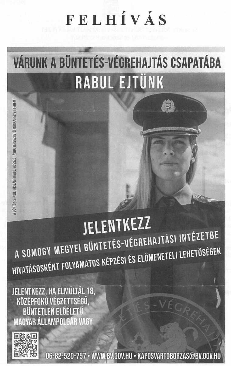 A Somogy Megyei Büntetés-végrehajtási Intézet értesítése alapján az alábbiakban olvasható álláslehetőségekről tájékoztatjuk Önöket:
