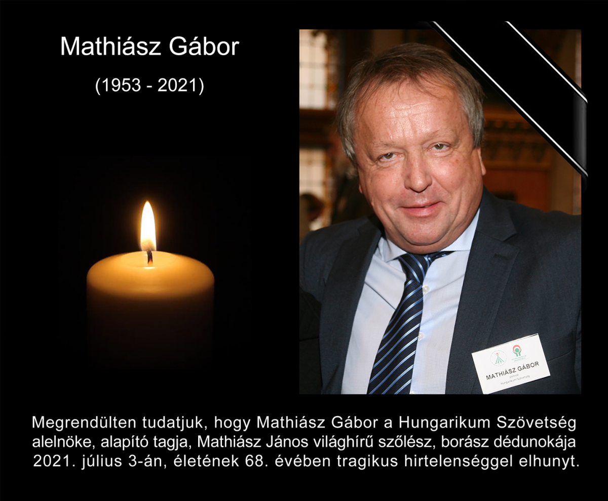 Tájékoztatásul közöljük, hogy Mathiász Gábor, a Hungarikum Szövetség alelnöke, tragikus hirtelenséggel elhunyt.