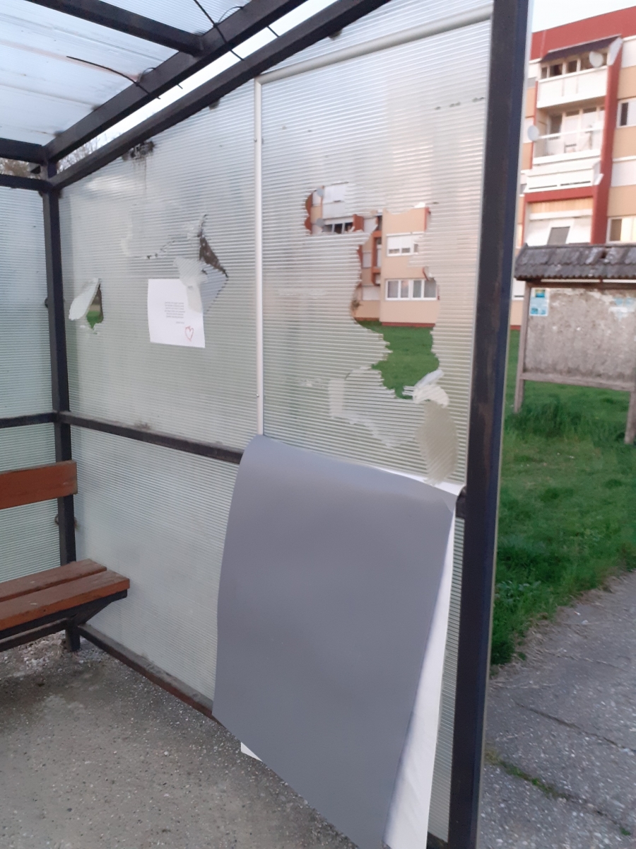 A 2022. április 11-ei éjszaka 22:45 órakor egy fiatal férfi dühöngött, szitkozódott és, hogy erejét is megmutassa az Önök, mint Adófizetők pénzéből megépített buszmegálló oldalát szétrugdosta.
