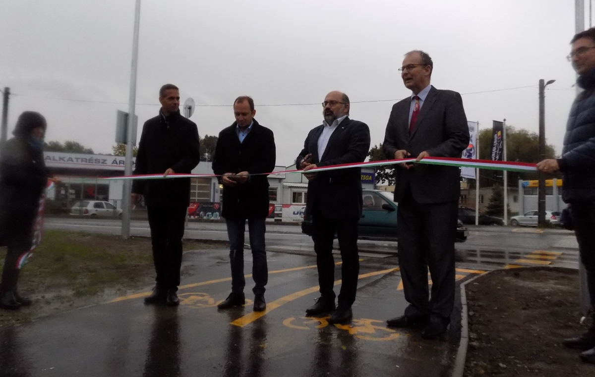 A nemzeti színű szalag átvágásával ünnepélyesen átadtuk a létesítményt a forgalomnak.