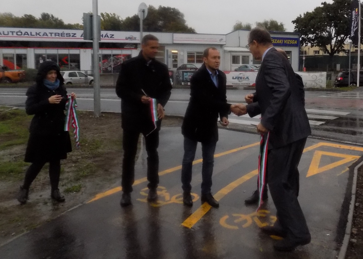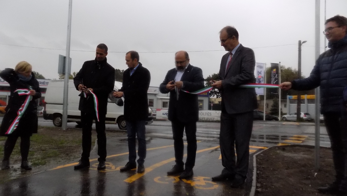 A szalag átvágásában közreműködtek: Nagy Csaba országgyűlési képviselő úr, Dr. Őri László úr, a Baranya Megyei Önkormányzat közgyűlésének elnöke, Bánki László úr a Magyar Közút Nonprofit Zrt. Baranya Megyei Igazgatóság igazgatója és Dr. Vass Péter Szigetvár Város Polgármestere.