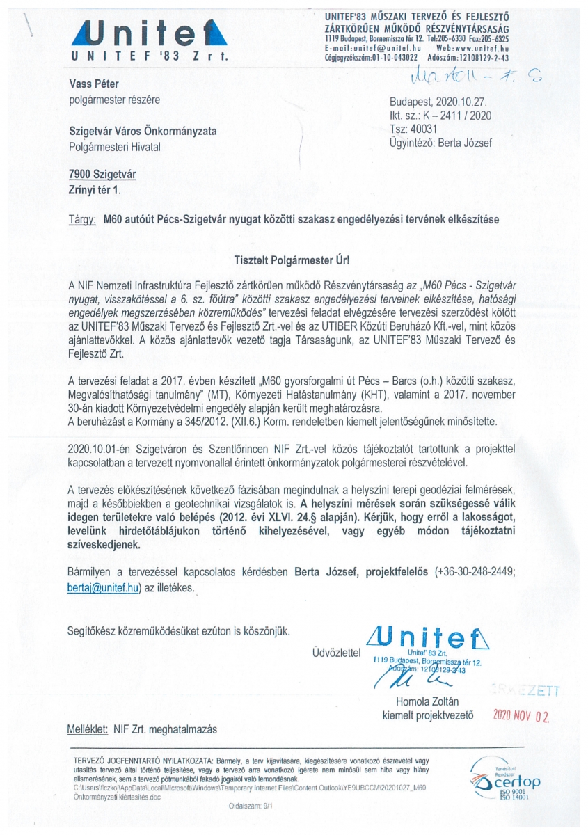 Ezúton tájékoztatjuk a Tisztelt Lakosságot, hogy a tervezett M60 autóút engedélyezési terv készítéséhez kapcsolódóan a helyszíni mérések során szükségessé válik idegen területekre való belépés, melyről a lakosság ezúton kap tájékoztatást.