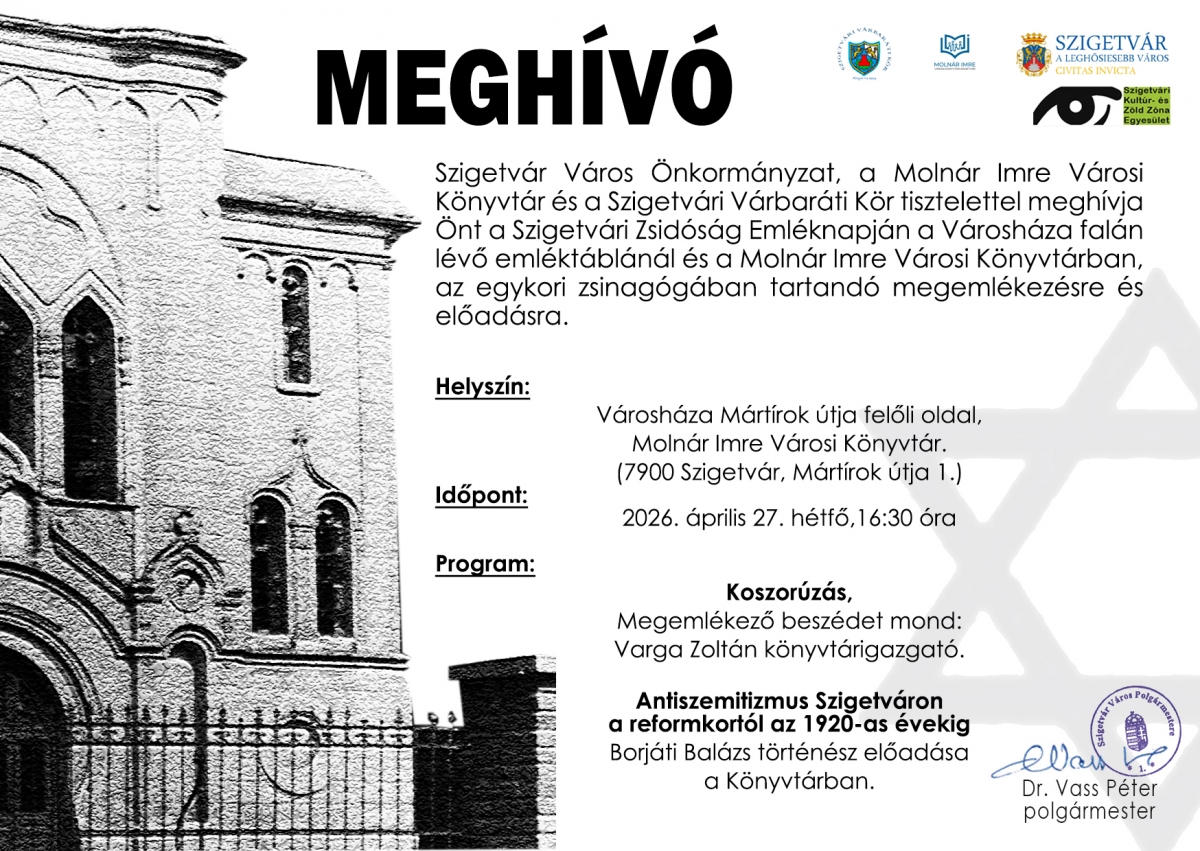MEGHÍVÓ - a szigetvári zsidóság emléknapja alkalmából tartandó megemlékezésre