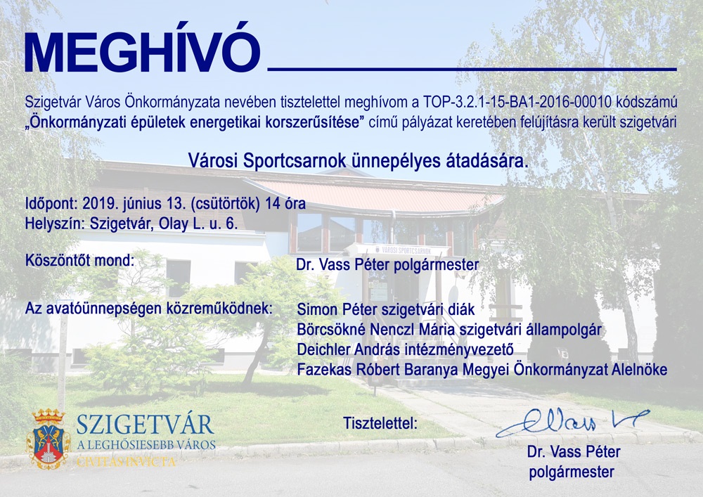Meghívó - a Városi Sportcsarnok átadóünnepségére