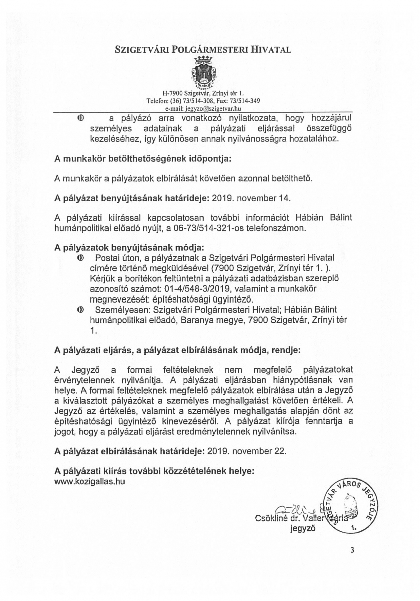 Pályázati felhívás építéshatósági ügyintéző munkakör betöltésére
