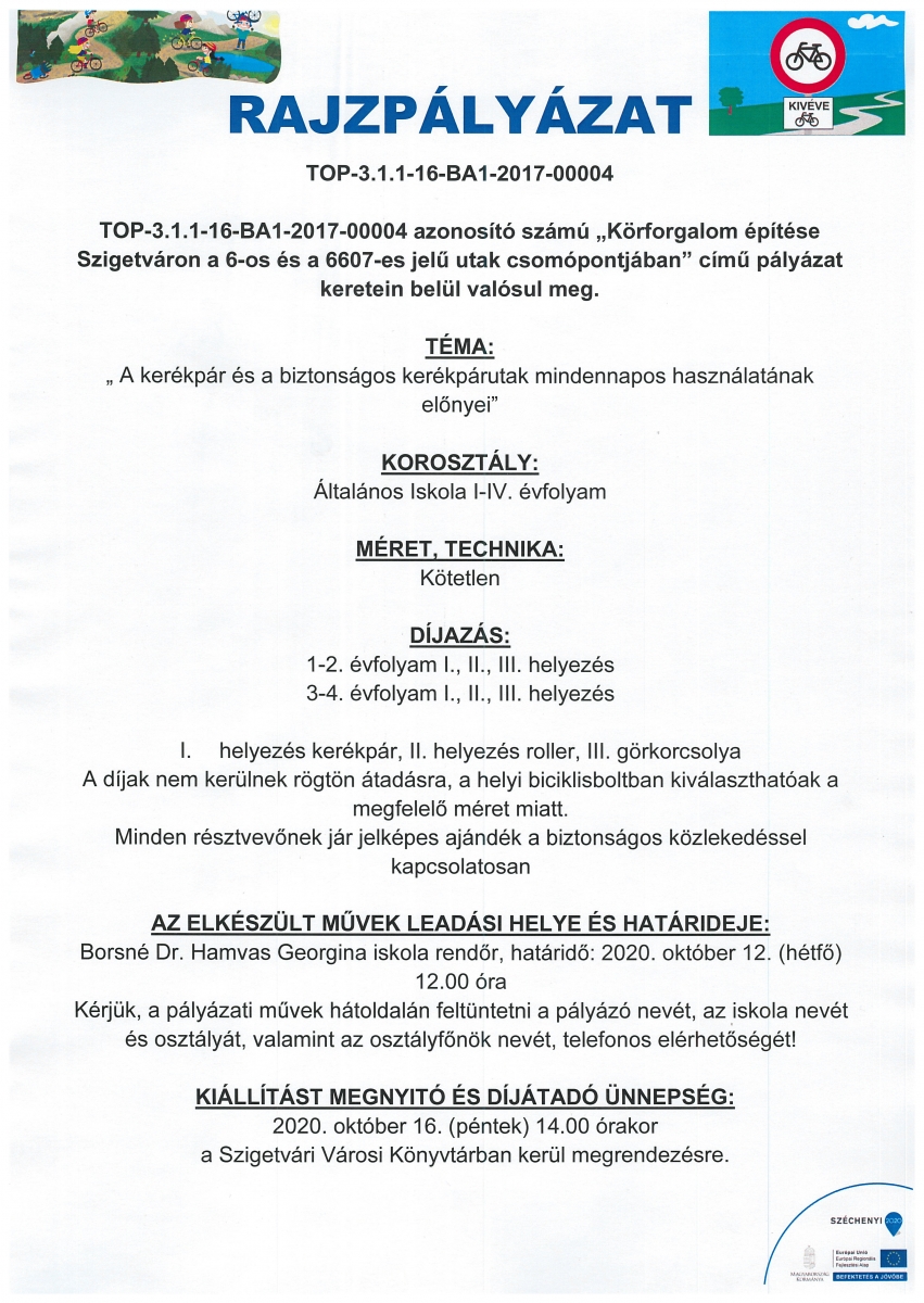 Kérjük, a pályázati művek hátoldalán feltüntetni a pályázó nevét, az iskola nevét és osztályát, valamint az osztályfőnök nevét, telefonos elérhetőségét!