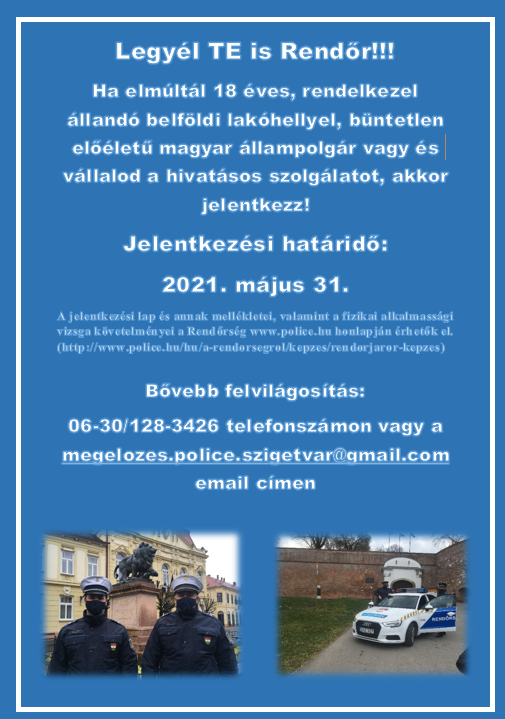 Rendőrségi felhívás - Legyél TE is Rendőr!!!