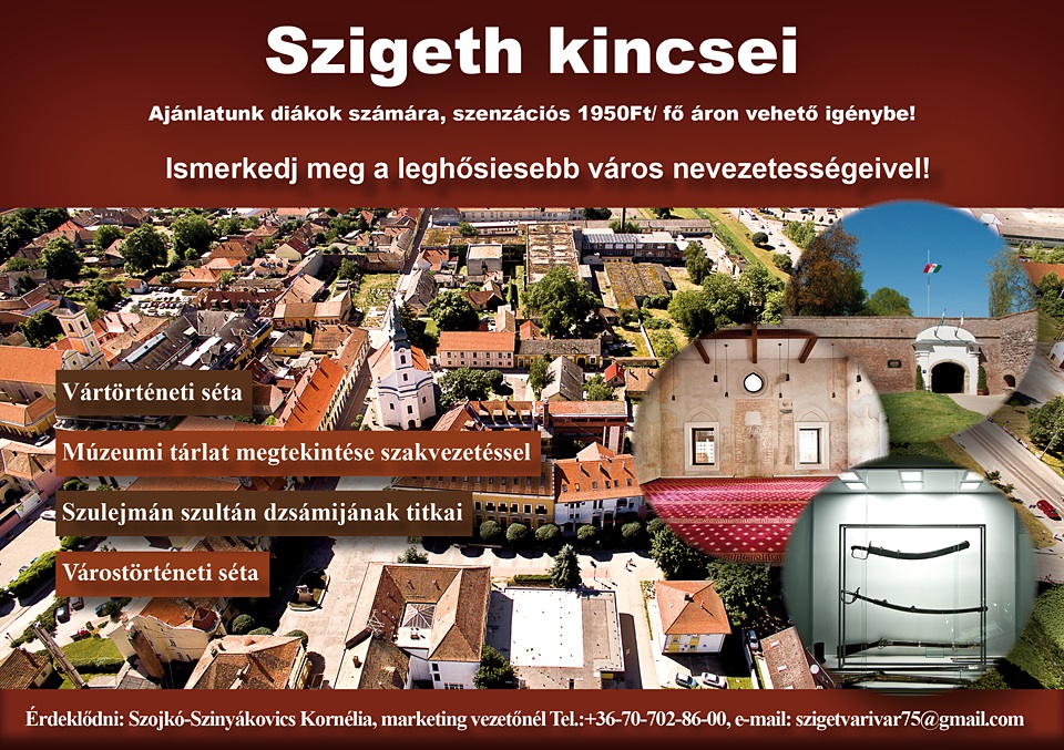 Érdeklődni: Szojkó-Szinyákovics Kornélia marketingvezetőnél lehet a +36/70-702-86-00 telefonszámon, vagy e-mail útján: szigetvarivar75[at]gmail[dot]com