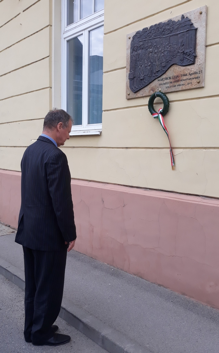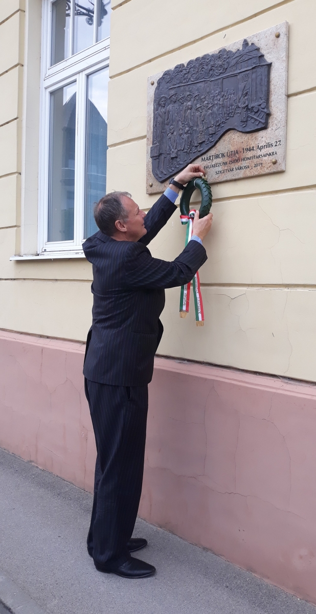A Szigetvári Zsidóság Emléknapján babérkoszorút helyeztem el valamennyiünk nevében - a tavaly felavatott -, a Városháza épületének falán lévő emléktáblán.