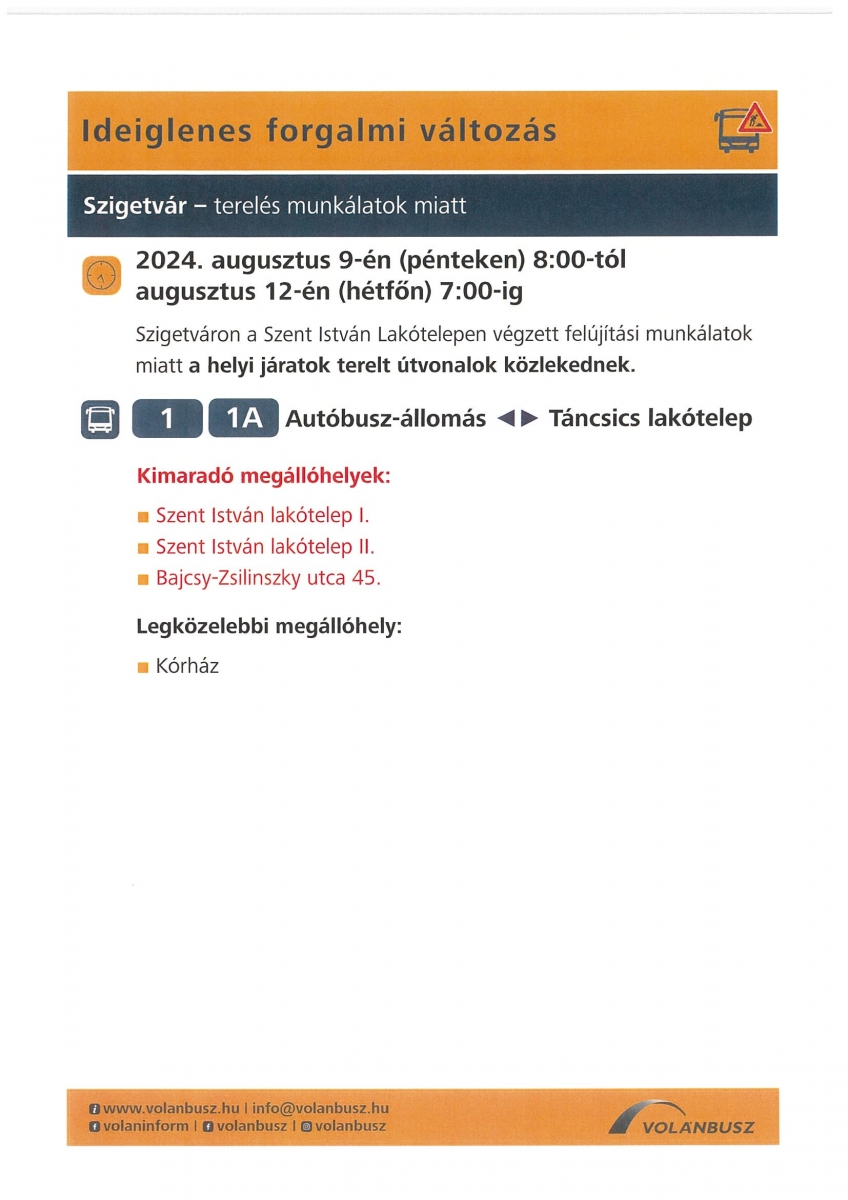 Tájékoztató - Ideiglenes forgalmirend változásról