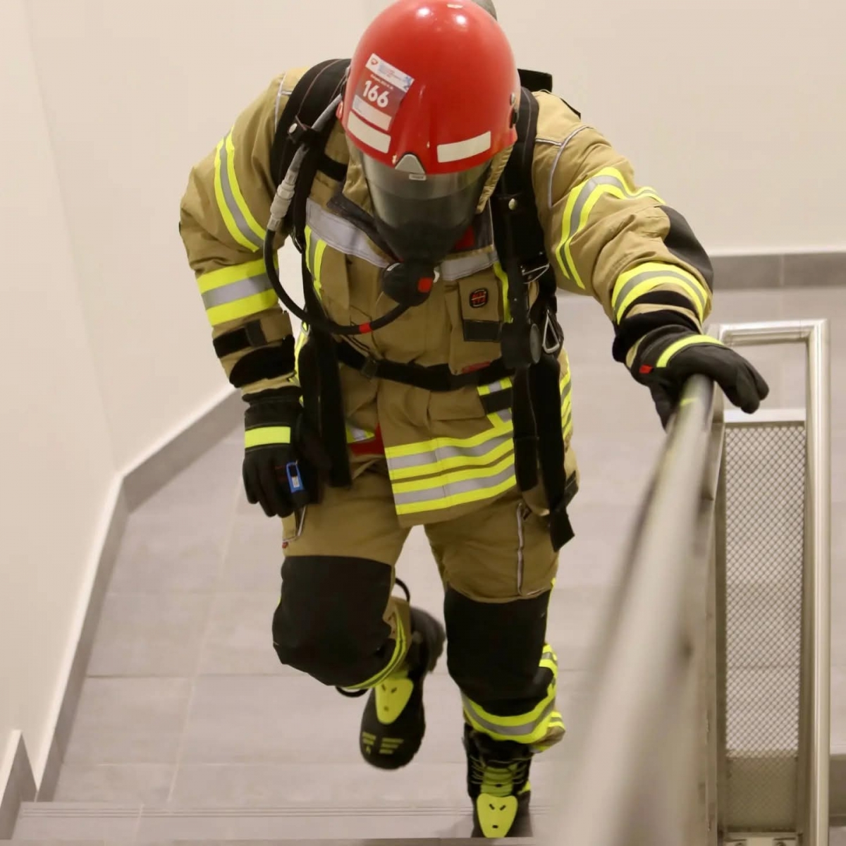 Mi is az a lépcsőfutás? A versenyzőknek versenyhelyszíntől függően különböző magasságú épületet, toronyházat kell leküzdeniük minél rövidebb idő alatt. A felszerelés pedig a tűzoltó szakmában használt teljes bevetési védőruha, légzőkészülék használata mellett. A teljes felszerelés nagyjából 25kg plusz súlyt jelent minden egyes versenyzőnek.